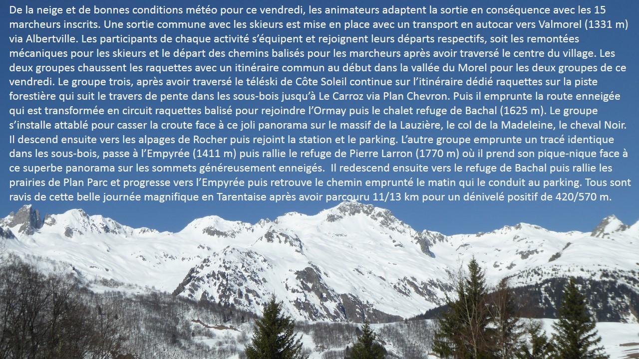 Rando raquettes du vendredi 13 mars 2026 Valmorel
